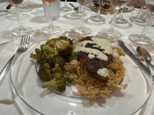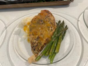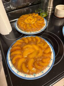July 2025 Moscato & Rose Grilled Blackened Chicken & Broccoli with Garlic Herb Drizzle over Rice & Peach Upside Down Cake