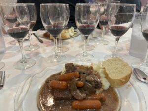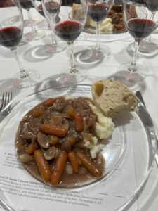 January 2025 Cabernet Sauvignon As an impending snowstorm approaches this weekend it is time to start thinking about those warming dry reds that we want to have not only at dinner but anytime thru the day to warm up. The Cabernet Sauvignon is considered the Big Red Wine. These wines can be dry but they can also be smooth and easy to drink. They will pair well with a multitude of foods but we will be pairing it with a great beef recipe. So if you want to warm up and enjoy an evening with friends and family we look forward to seeing you soon. This month we paired our Cabernet Sauvignon with French Beef Bourguignon, Mashed Potatoes & Black Forest Cake.
